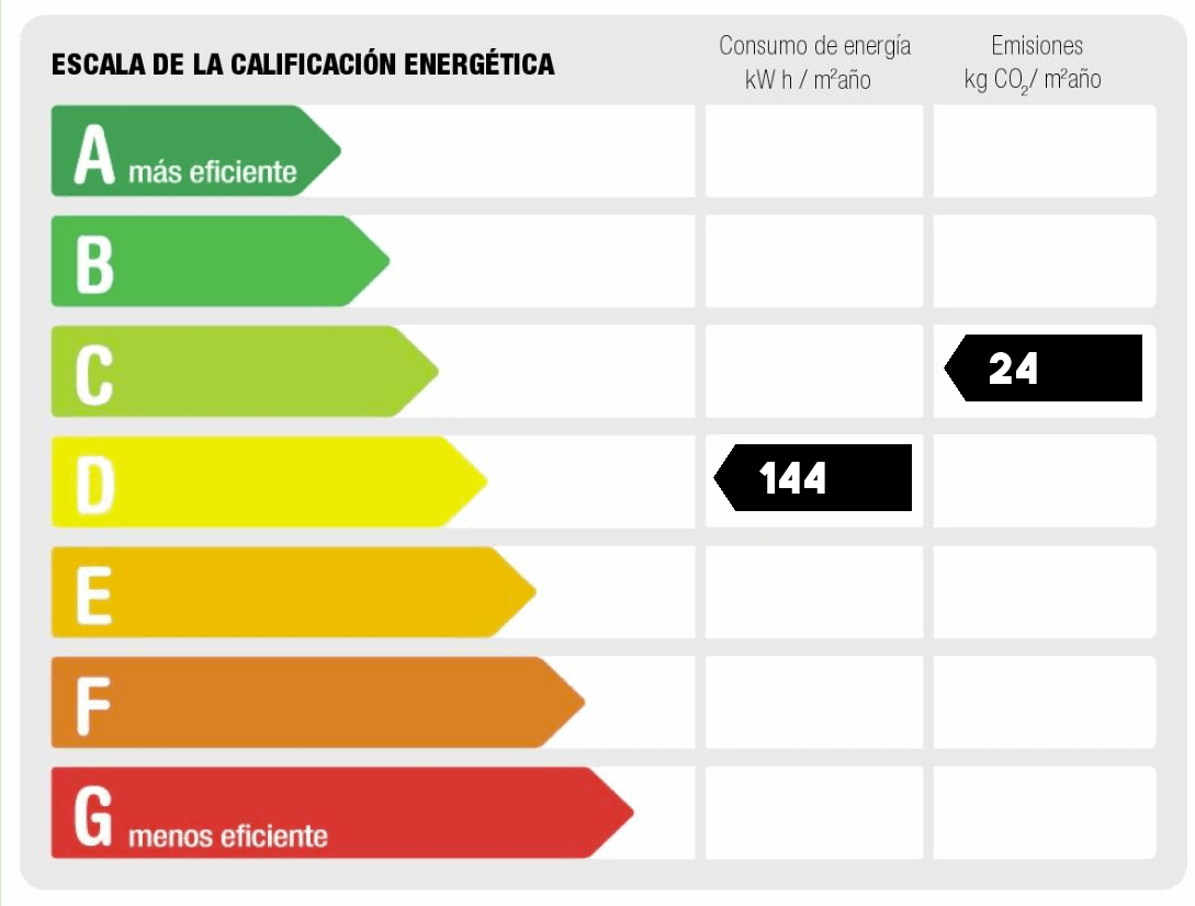 - Consumo de energía (kwh/m2 año): 144.